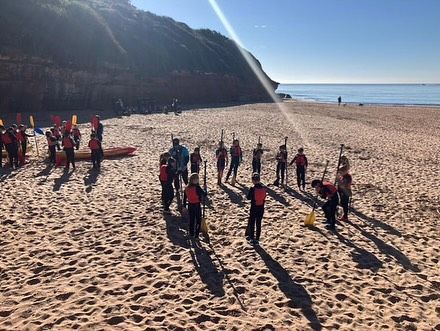 Orcombe point and along to sandy bay has a brilliant paddle along the jurassic coast but, is open sea and many different conditions prevail. Sometimes we get waves, sometimes chop and often Sammy the seal. The paddle to Sandy and back is a great workout but it is for the more experienced paddler.